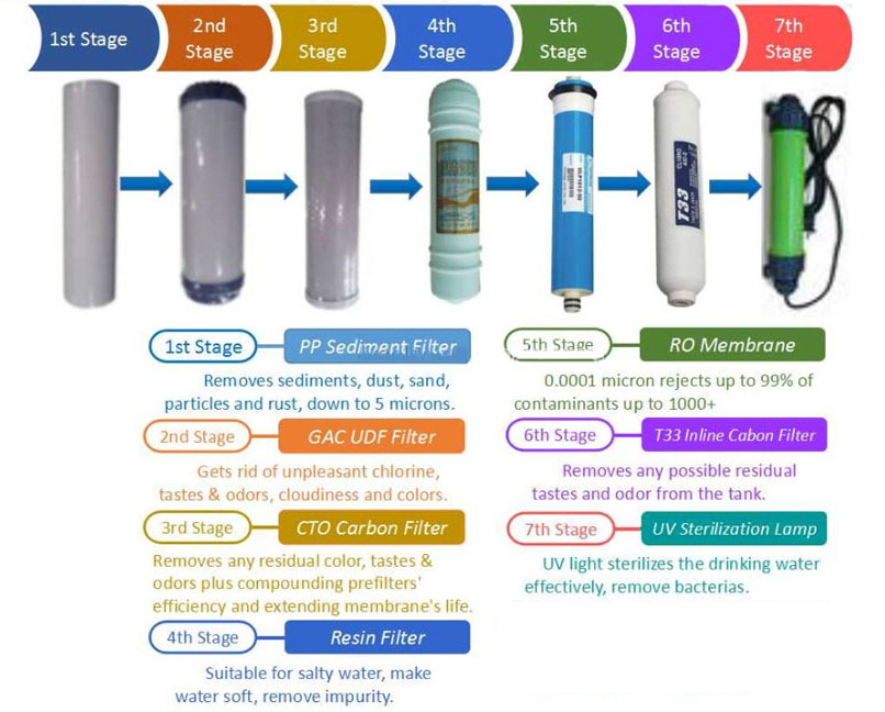 This revolutionary new Ultra Tec (made in German) RO system 7 stages uses Reverse Osmosis, Mineral Filter and Carbon Filtration to put refreshing, clean water at your fingertips. No other system available anywhere can give you all three kinds of purification and a system that is so simple.